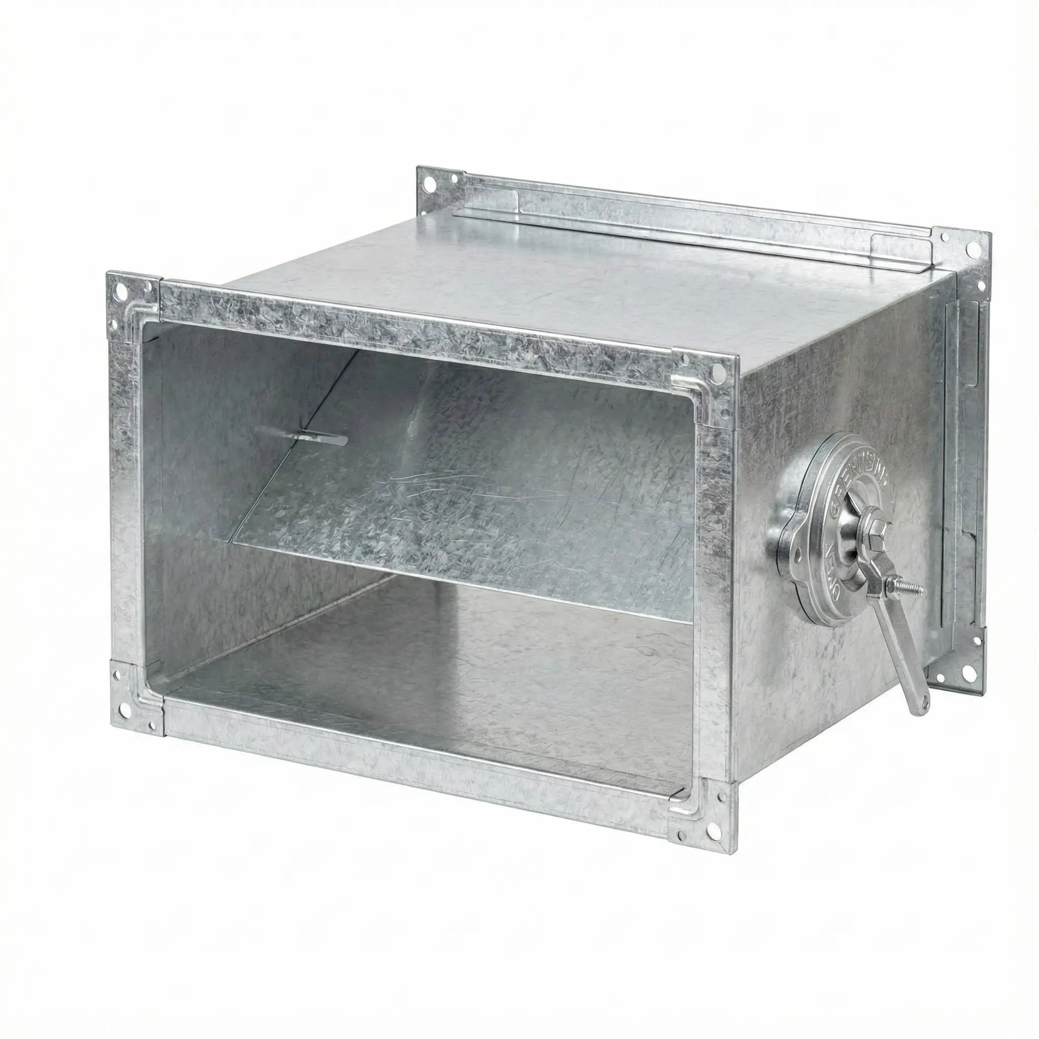 Данный дроссель-клапан имеет прямоугольную форму и устанавливается в вентиляционных каналах прямоугольного сечения.
